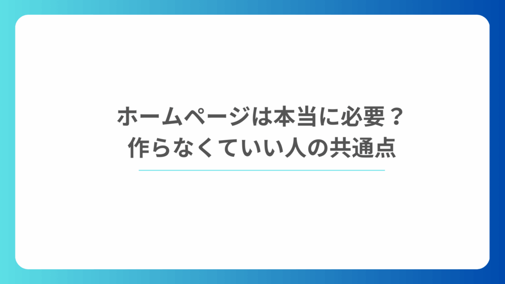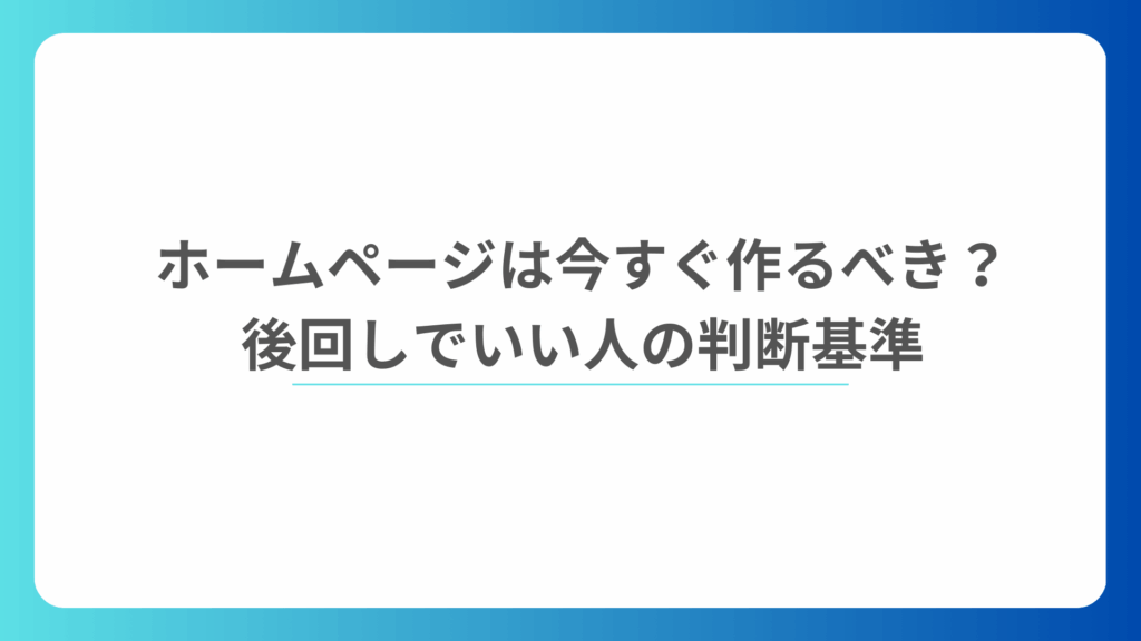 ホームページは今すぐ作るべき?後回しでいい人の判断基準