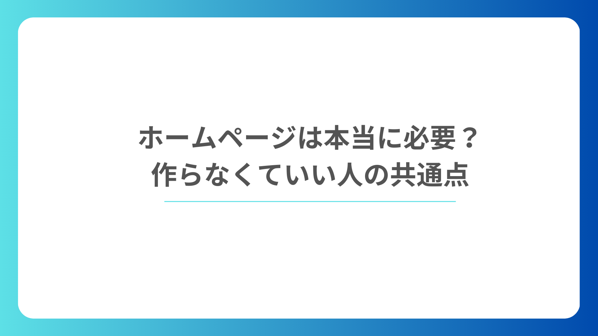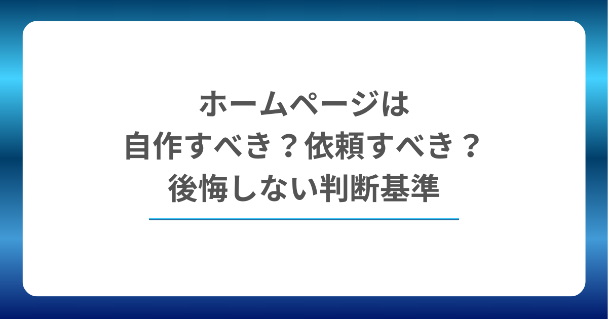 前回の記事では「ホームページは本当に必要か?」という判断軸についてお伝えしました。その結果、「やっぱり作ろう」と思った方もいれば、「今は必要ないかも」と感じた方もいるでしょう。
