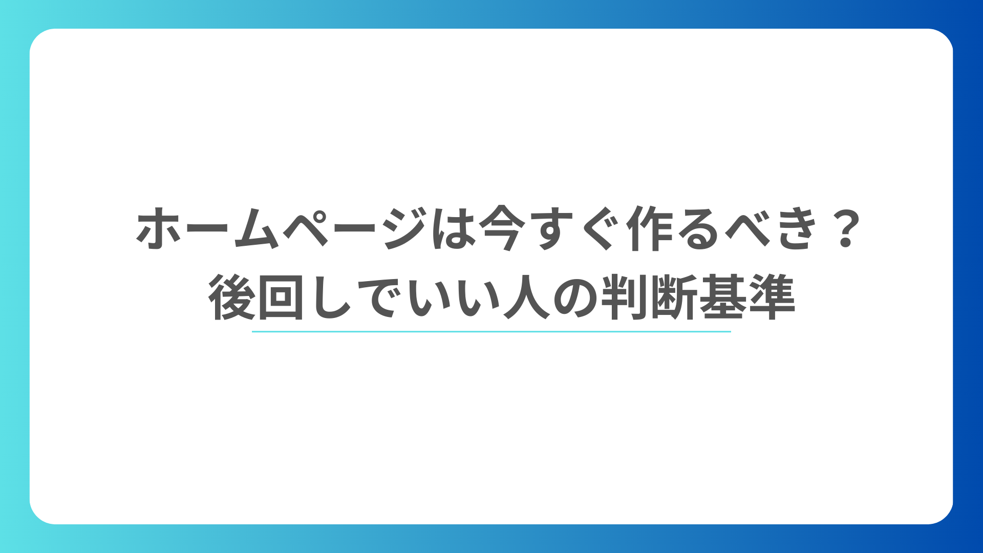 ホームページを作るタイミングは、人によって違います。今すぐ動くべき人もいれば、後回しにしても問題ない人もいます。大切なのは、なんとなく先送りするのではなく、自分の状況を見極めて判断すること。この記事が、後悔のない決断の助けになれば幸いです。